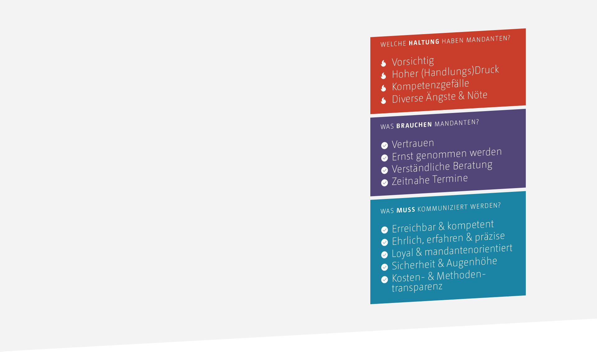 Bei den Rechtsanwälten Sommerfeld van Suntum Frick in Leipzig haben wir genau das umgesetzt: Wir sprechen die Mandantennöte direkt an und zeigen klar, welchen Mehrwert die Kanzlei bietet – authentisch, verständlich und nahbar. Wir zeigen eine einzigartige Positionierung in einem Feld, das von Vertrauen und Beziehung lebt.